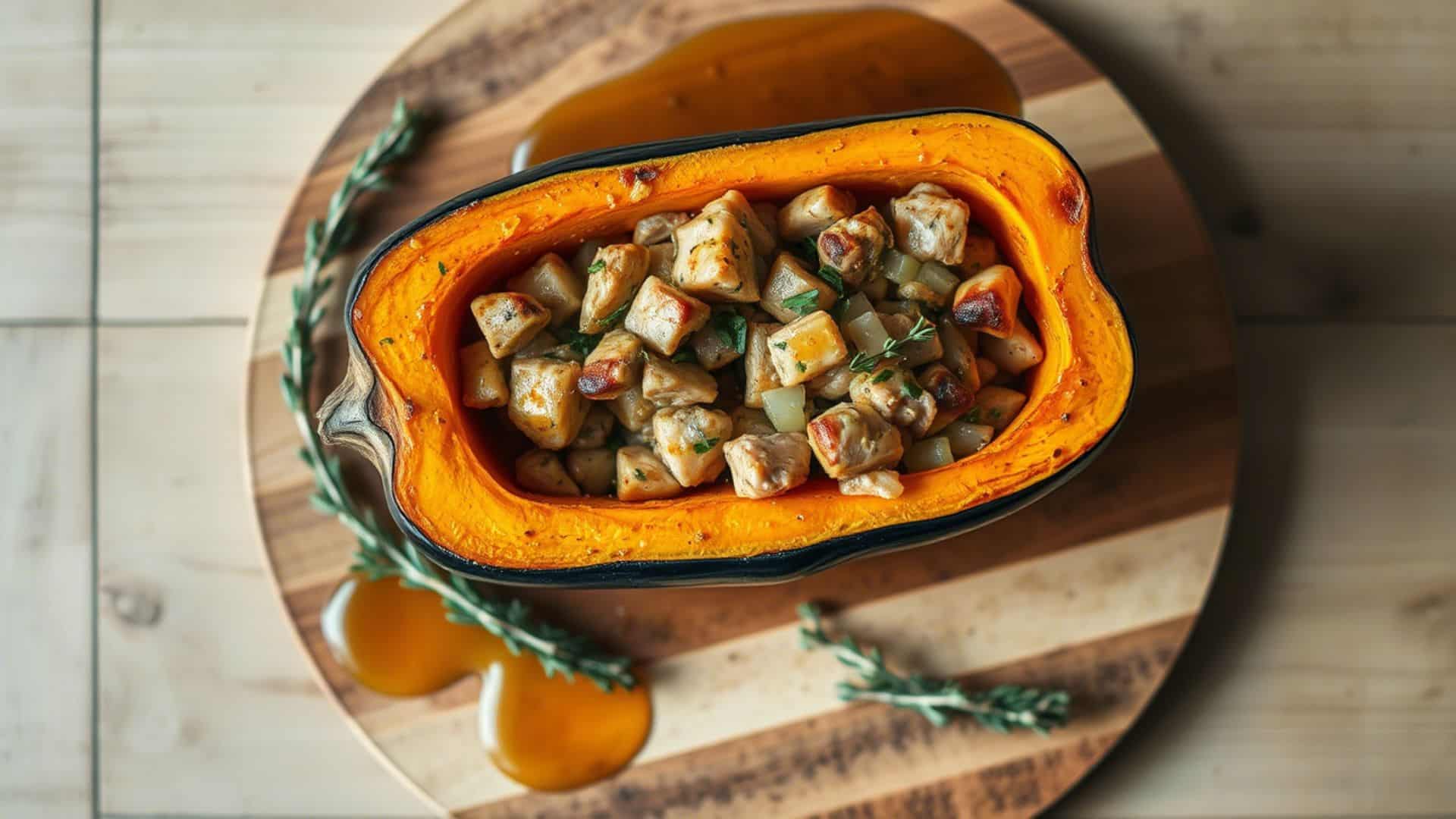 This isn’t your grandmother’s stuffed squash recipe. While traditional preparations often rely on breadcrumbs and vegetables for filling, this sophisticated approach transforms humble butternut squash into an elegant centerpiece that bridges the gap between comfort food and fine dining. The natural sweetness of honey-glazed squash creates a perfect counterpoint to savory, herb-crusted chicken, while the roasting process melds flavors in ways that will surprise even seasoned cooks.